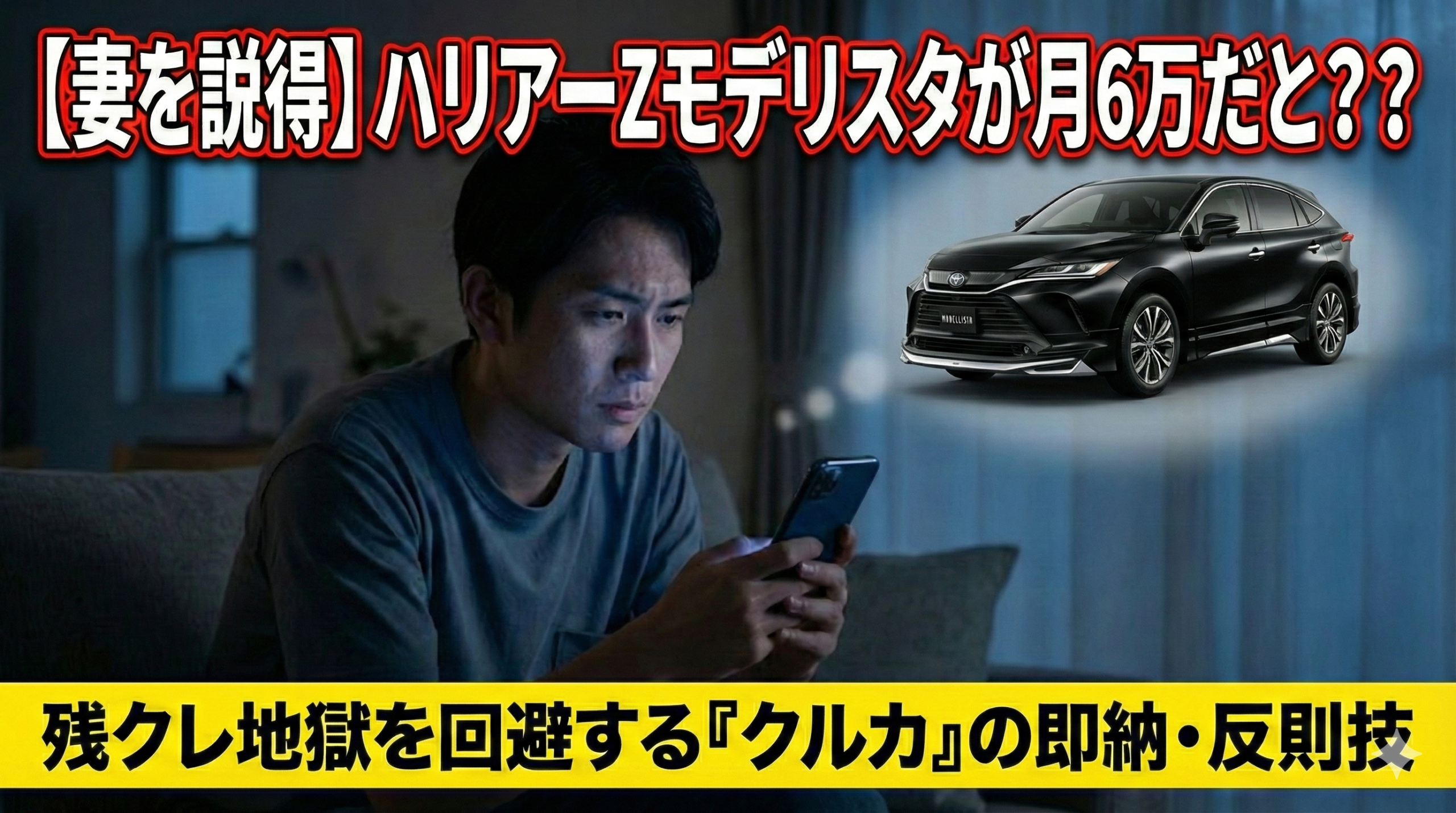 この記事で手に入る「勝利」と「解決策」 ✅ 【金銭的解決】乗り出し580万円の「ハリアーZ+モデリスタ+調光パノラマ」を、頭金0円・ボーナス払い0円の「月6万」で乗る裏技。 ✅ 【比較の真実】「月々3万」というディーラー残クレの罠と、3年間で総額100... -